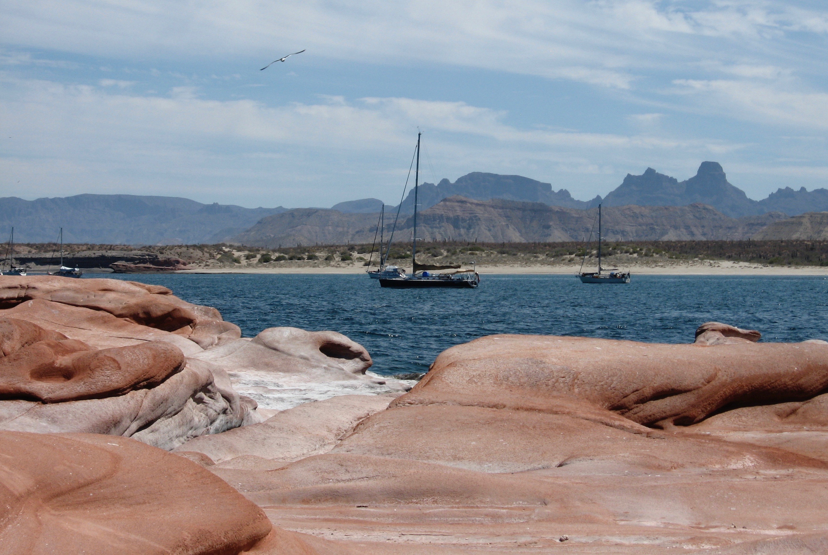 There are a lot of mooring balls in Puerto Escondido and more cruising boats than we have seen since La Paz. There are no empty mooring balls big enough for 50-foot boats, so we anchor out in the bay with a good view of The Windows.