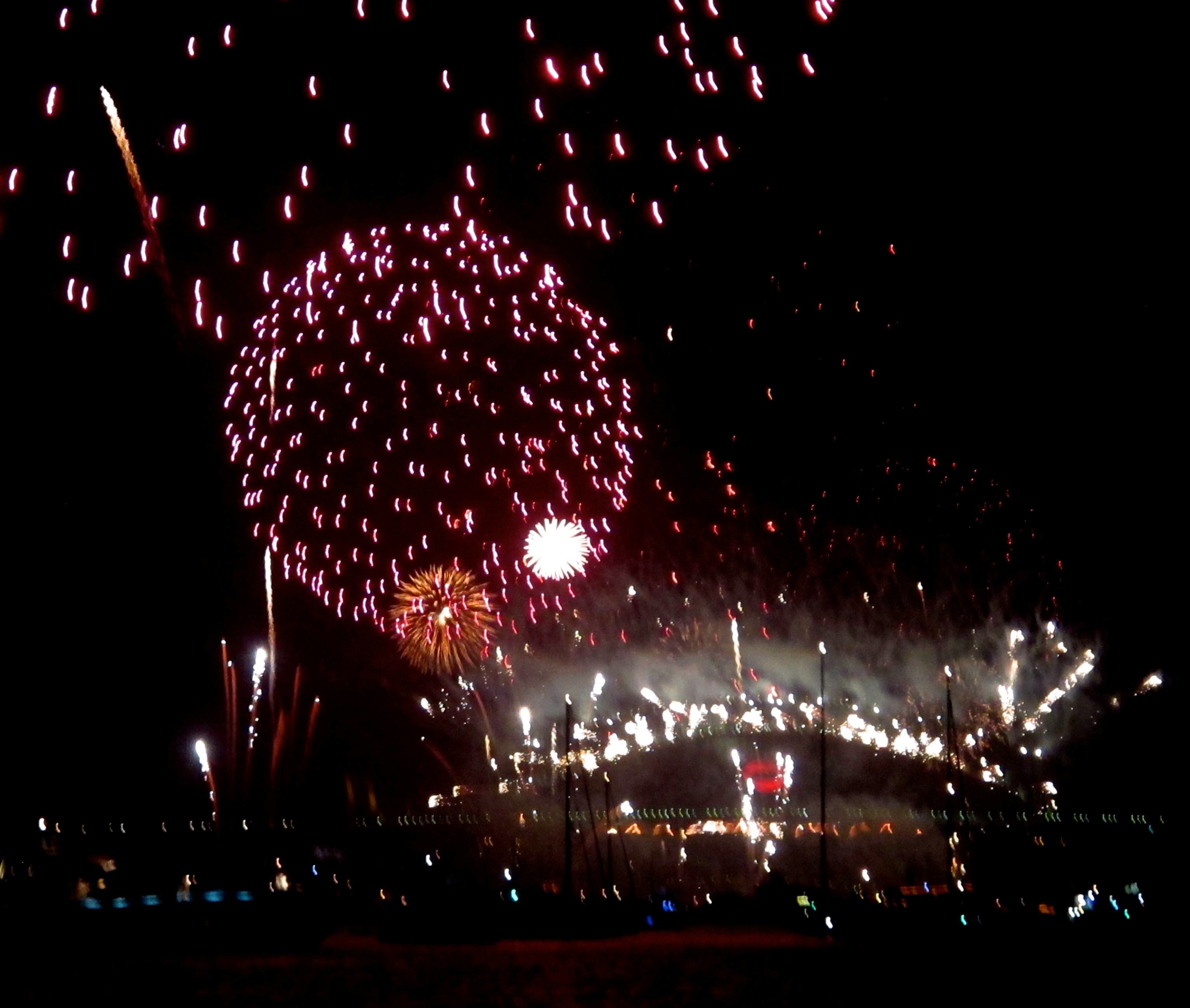 They launch fireworks from 5 barges in the harbor and from the tops of 7 downtown buildings. It looks like the whole harbor is ablaze in fireworks. Everywhere we look, we can see something happening. What a display! Each volley is better than the next.